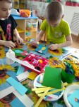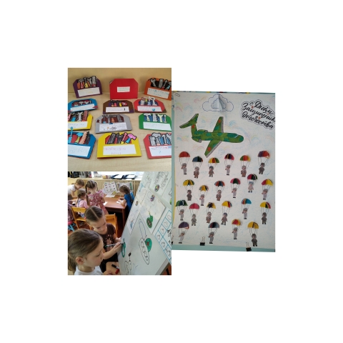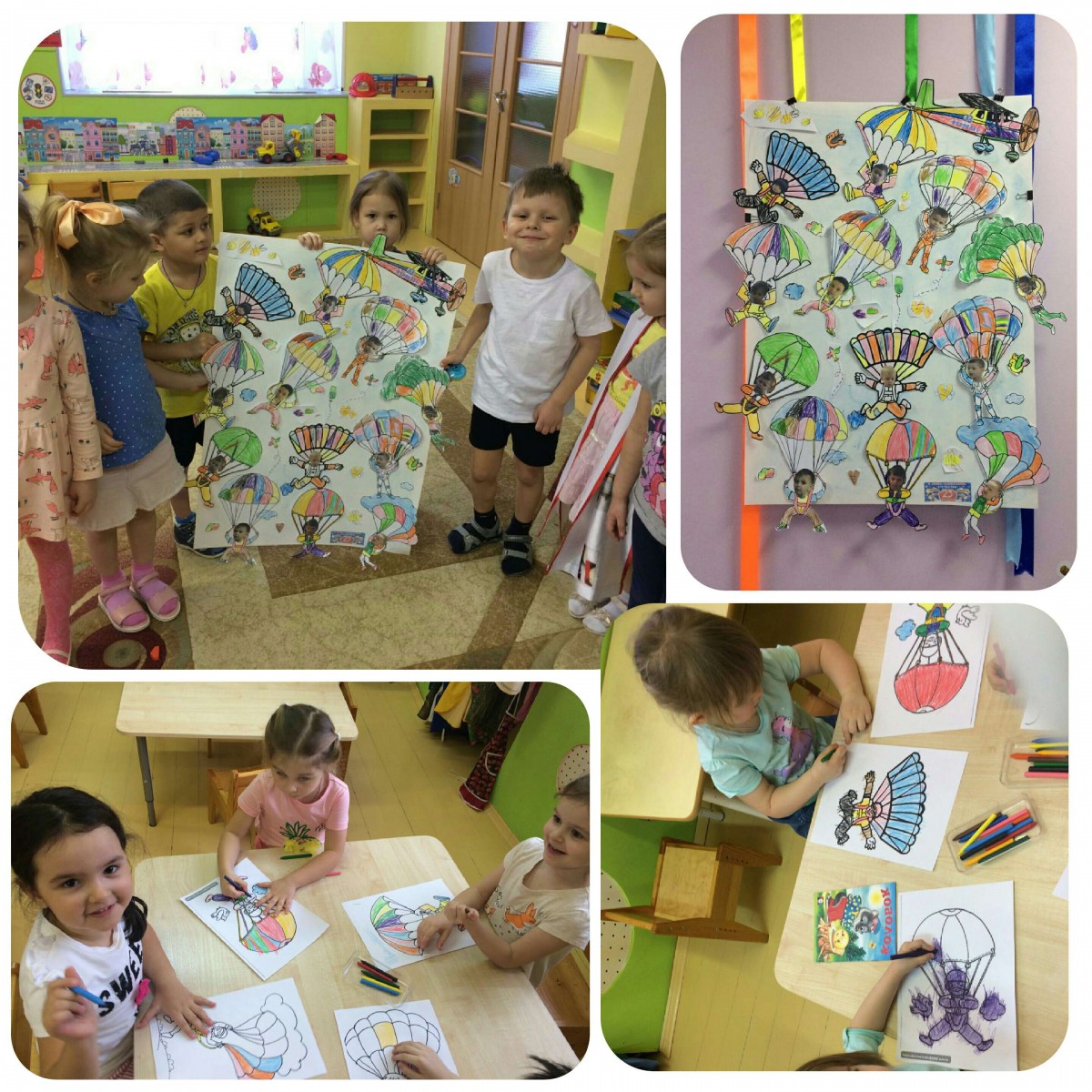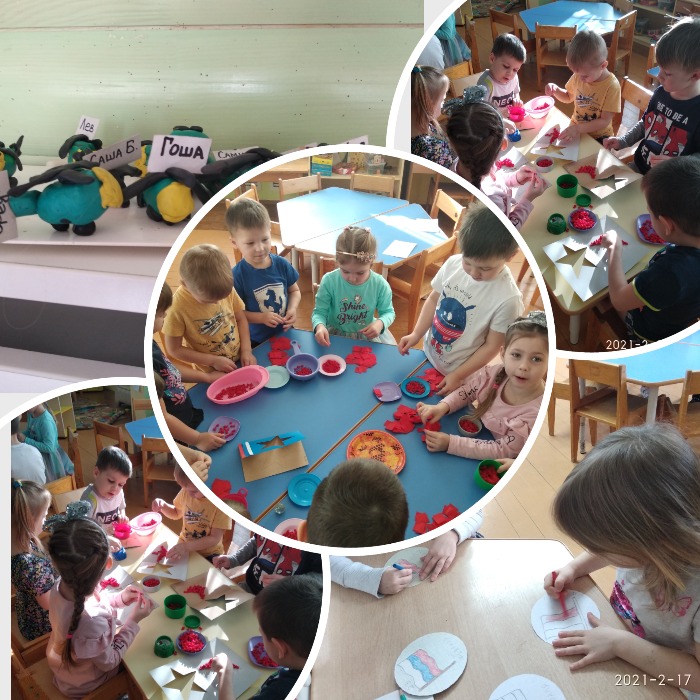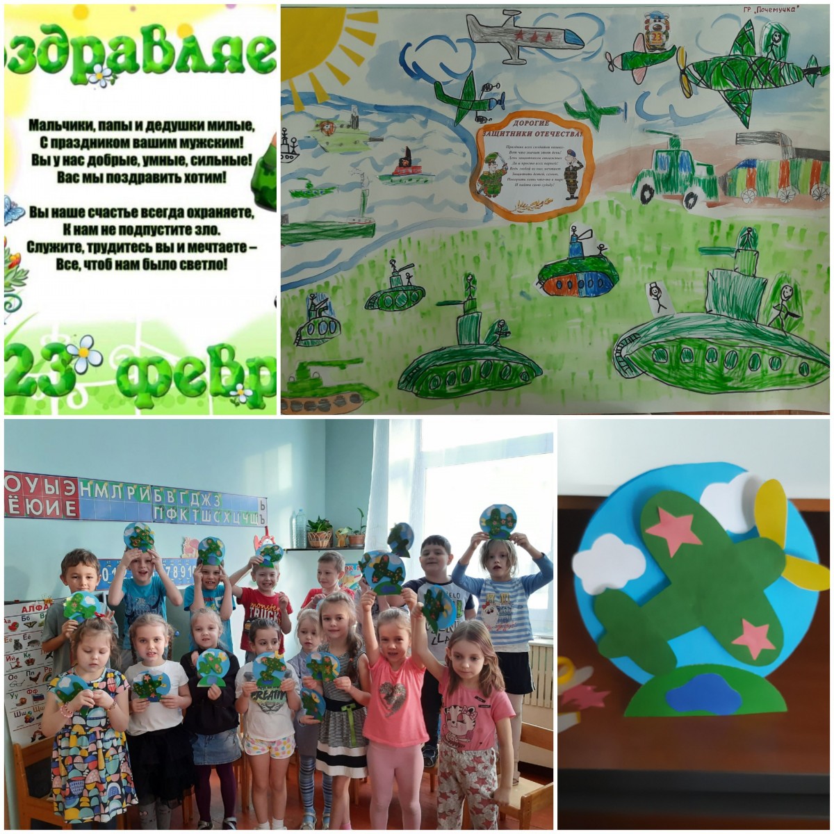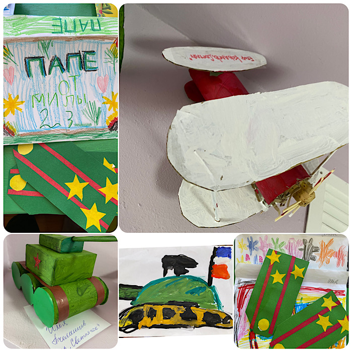 К середине недели девчата приготовили мальчиками яркую и красочную стенгазету с поздравлениями. Все вместе лепили весёлые вертолёты и готовили папам портреты.