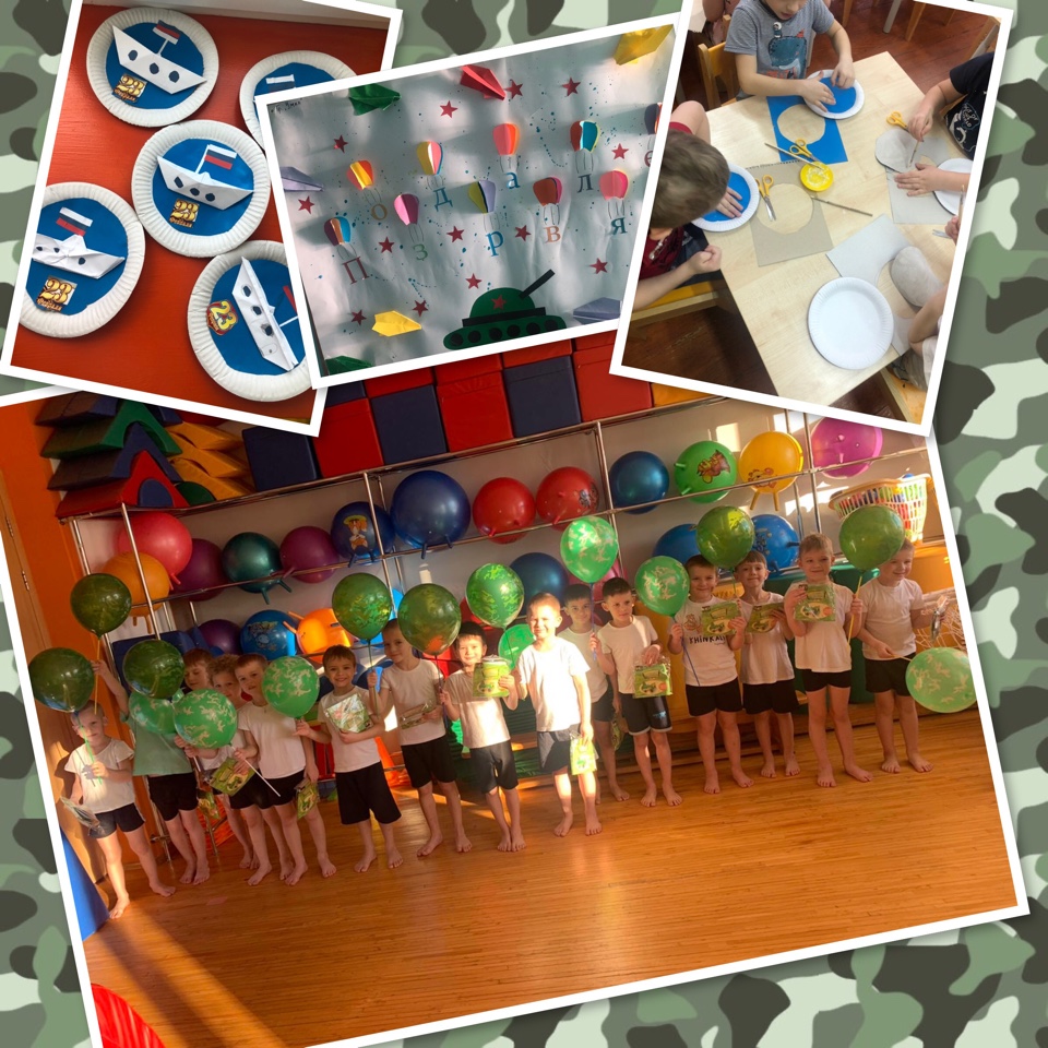 Затаив дыхание, все слушали про защитников нашего Отечества от богатырей до современных десантников. Игрушечные солдатики шли в наступление, военная техника принимала бой! Вот и мальчикам удалось проявить свою силу, выносливость и смекалку на спортивном развлечении, где закрепили военные профессии и получили награды. Ну как обойтись без подарков для любимых пап, дедушек: учили стихи,рисовали, клеили с огромным желанием и вдохновением!
