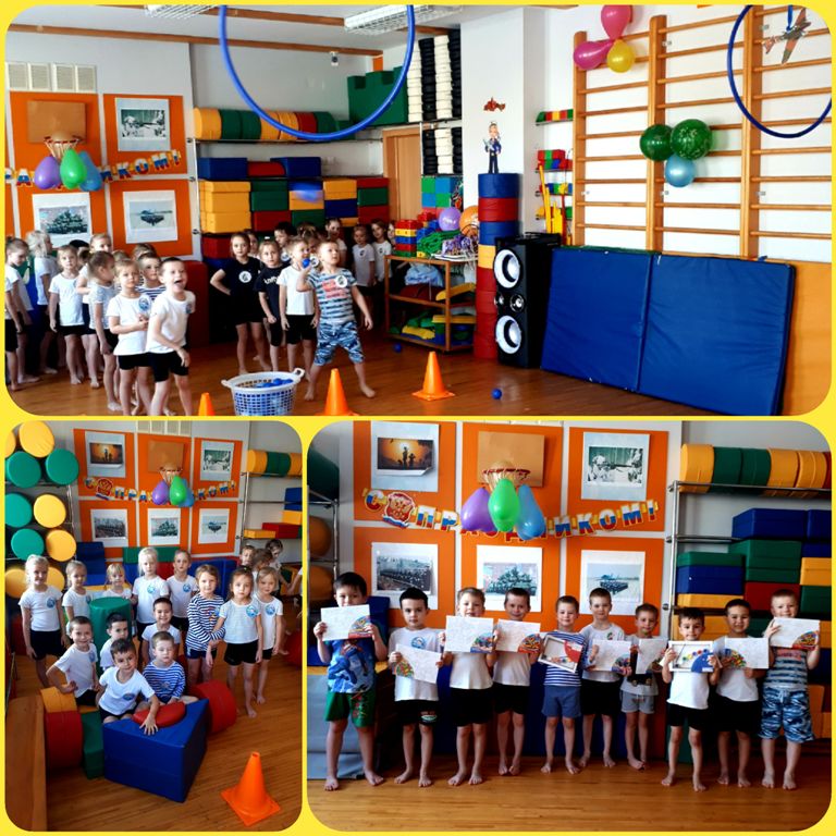 Капитошки сделали стенгазету с поздравлением всем нынешним и будущим защитникам Отечества! Проявили свою отвагу на спортивном празднике, где за каждое выполненное боевое задание получали часть карты, а собрав ее целиком, нашли место с трофеями! Не обошлось без подарков для пап- портреты и кораблики , щенки для пограничника получились у всех на отлично!