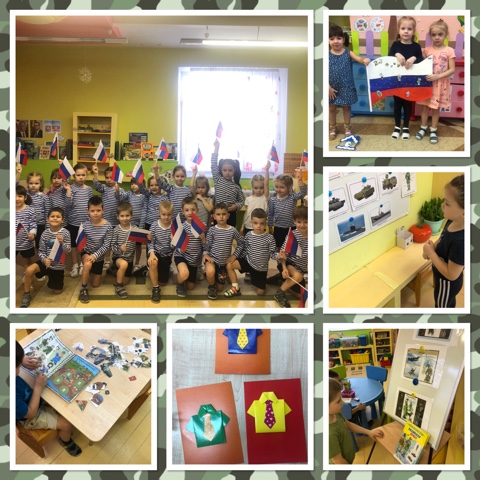 Прошлая неделя была посвящена празднику «День защитника Отечества». Педагоги с ребятами группы Петушок провели беседы об истории этого праздника, о военных профессиях и посмотрели презентации на эту тему. Так же каждый ребёнок подготовил подарок для своего папы, а наши девочки поздравили мальчишек красивыми стихами. В завершении недели мы устроили день тельняшек, чтобы создать атмосферу праздника у детей.
