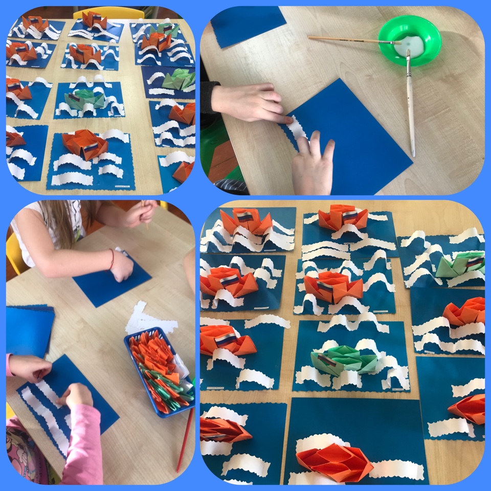 В группе Росинка на тему недели «Защитники отечества» была проведена беседа про праздник,кто такие защитники отечества, поговорили с ребятами о военной технике ,о войсках, о военных профессиях. Сделали коллективную поздравительную газету для пап и мальчиков. Ребята в технике оригами сделали подарки папам « Кораблик плывущий по волнам». Отправили видео поздравление папам с 23 февраля.