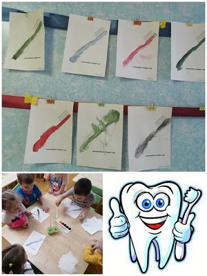 Понравилось рисовать здоровые зубки, выполнили аппликацию "Воробьи купаются".