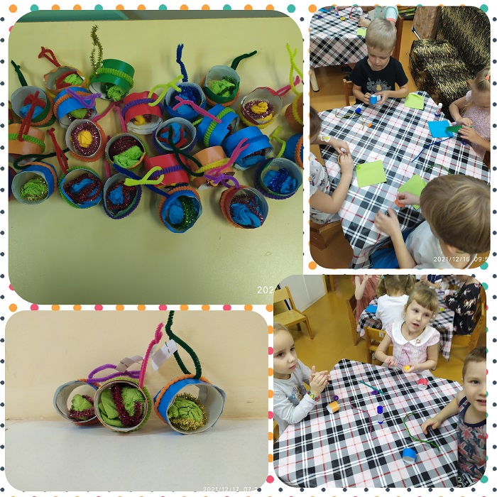На неделе Город мастеров ребята из группы Журавлик научились сами мастерить новогодние игрушки для елки. Каждый унес домой для елочки сделанную своими руками игрушку. А потом ребята надели волшебные новогодние шапочки, превратились в помощников Деда Мороза и нарядили в группе елку. Теперь осталось дождаться самого Деда Мороза к нам в гости, у нас все готово для встречи.