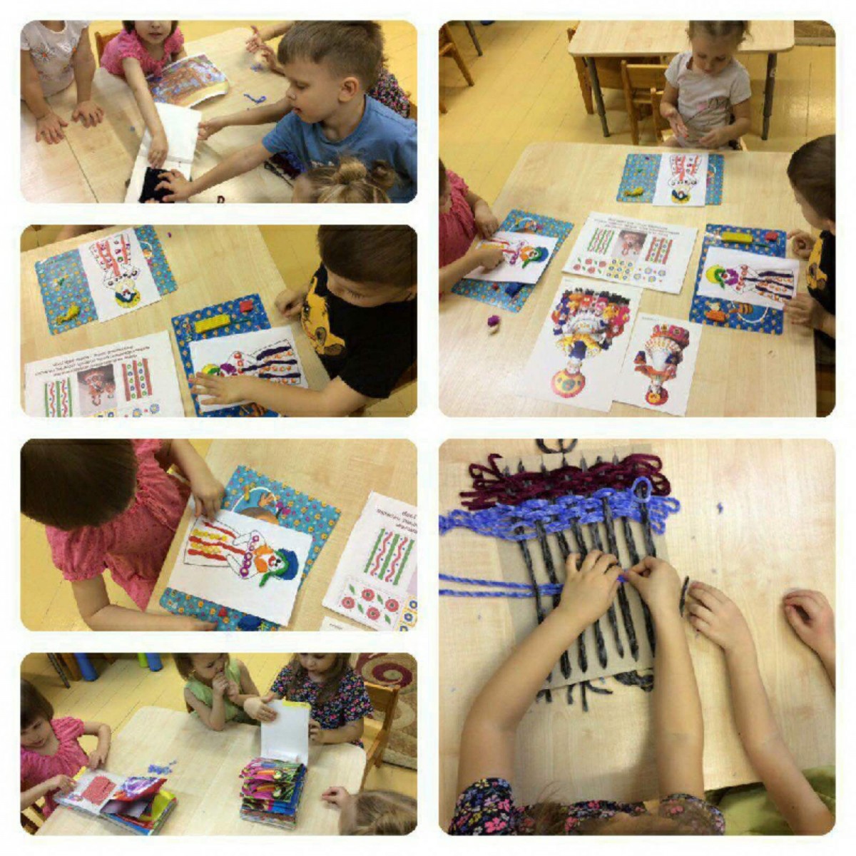 В жизни русского народа важное место занимала особая форма творчества — «промыслы". Изделия русских промыслов выражают отличительные черты и неповторимость русской традиционной культуры. Дымковская игрушка привлекла внимание ребят группы Петушок своими яркими узорами. Расписывая пластилином дымковскую барыньку, ребята пробовали себя в роли мастера по росписи.Ещё немаловажную роль в культуре русского народа занимало ткачество. На импровизированном станке девчонки и мальчишки ткали коврик. Знакомились с современными тканями, трогали на ощупь, сравнивая ткани между собой.
