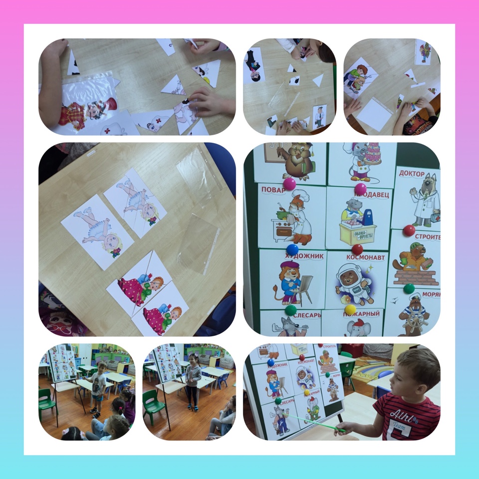 Закрепляли знания, чем занимаются люди той или иной профессии. Сделали вывод, что каждая профессия важна и имеет определённые навыки и знания!