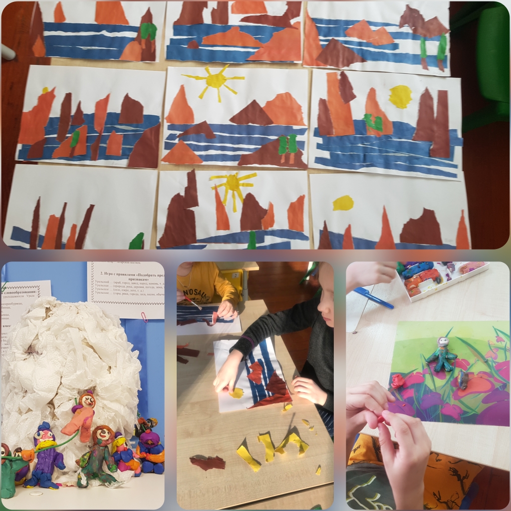 Выполнили аппликацию Уральские горы. Все остались довольные своей работой.