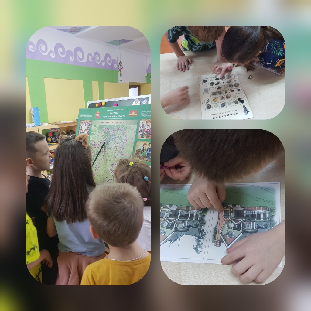 Ребята из группы "Почемучка" путешествовали по родному краю. Сначала изучили внимательно наш город Челябинск. Вспомнили все достопримечательности. Потом отправились знакомиться с парком "Таганай". Любовались видами, узнавали чем он богат. Познакомились с древним городом Аркаим, послушали легенды о нем. Играли в города и отмечали их на карте. Рассматривали гербы разных районов и узнавали интересные факты из их истории. Все увиденное, ребята изобразили в своих рисунках.