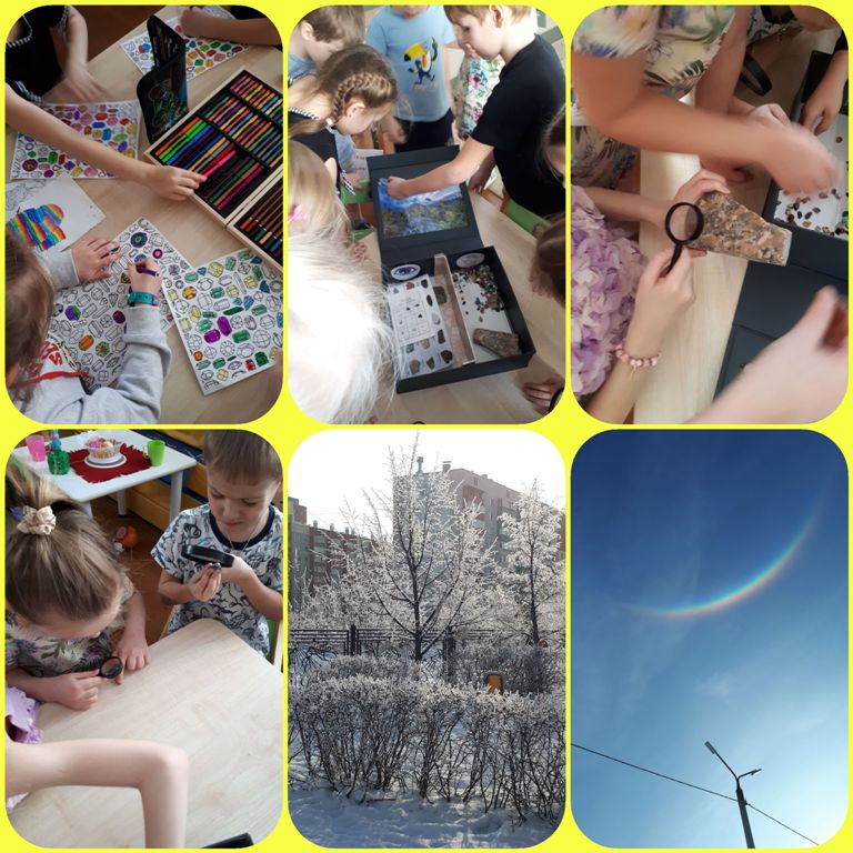 Зазвучали стихи и песни о нашем родном крае на этой неделе в гр. "Солнышко". С интересом посмотрели анимированную легенду о появлении Уральских гор, узнали как переводится название Урал. Порассуждали о том, если ли более полезные ископаемые, познакомились с новыми сказами П. Бажова, пристально изучили уральские самоцветы. Всё это нашло отражение и в творчестве: рисовали горы Таганая, лепили такую родную для всех берёзку. Урал — волшебный край! Только на Урале можно оказаться в царстве Снежной Королевы и увидеть зимой радугу.