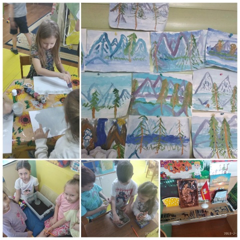 В группе "Журавлик" ребята рисовали горы нашего Урала , слушали стихотворения, играли.