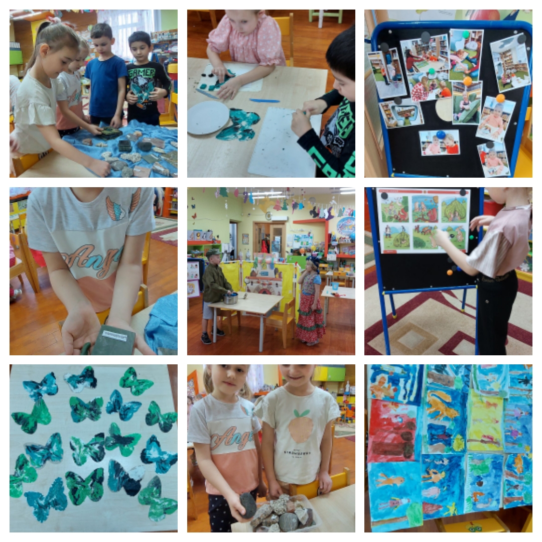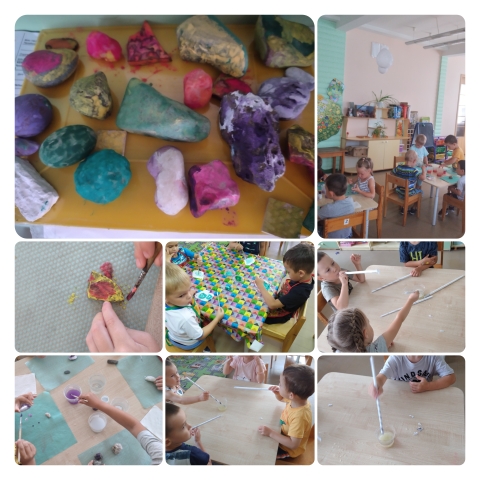 С ребятами красили камушки. Провели беседу о камушках самоцветах. Люди всегда ценили камни за красоту, редкость и любили украшения из камня. Ребята превратили простые камушки в красоту.