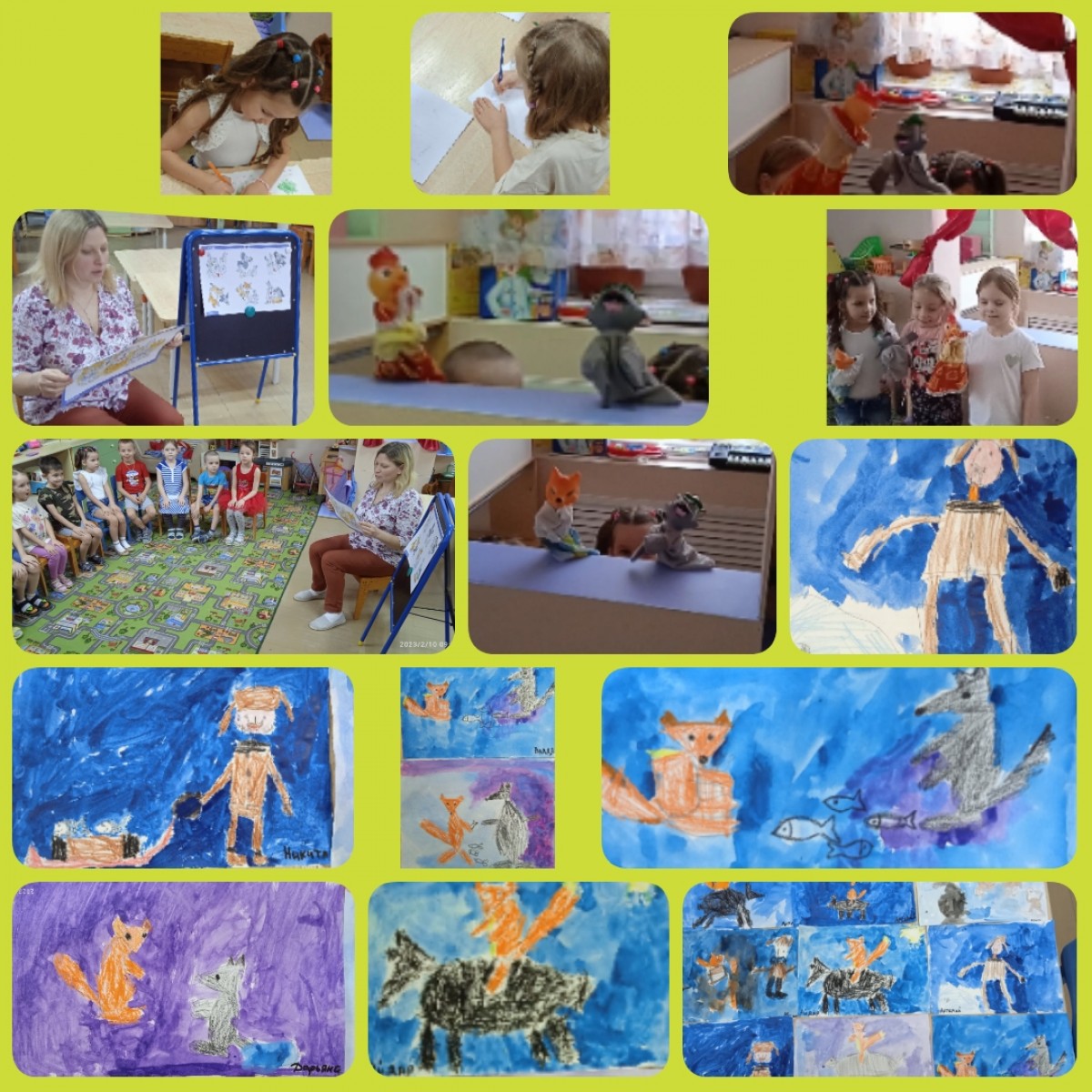 Рисовали сюжеты из сказки "Лисичка сестричка и серый волк".