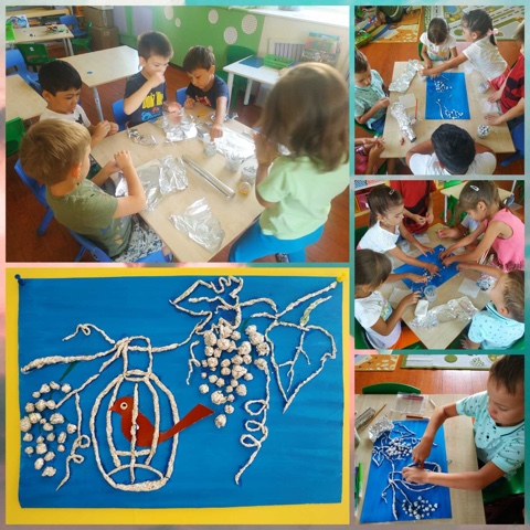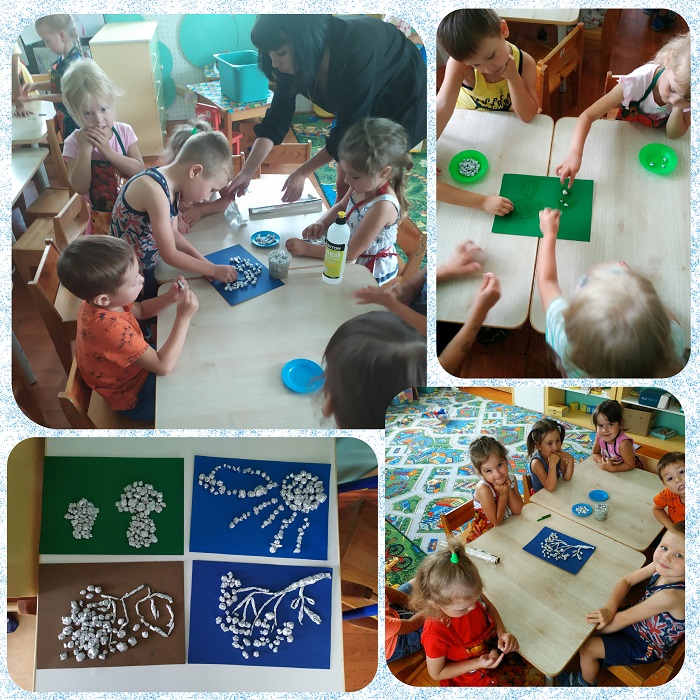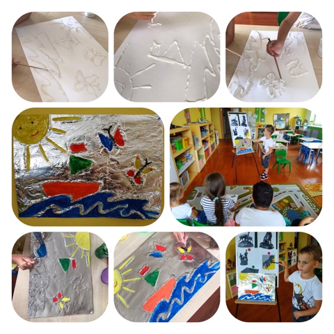 Для группы Журавлик провела интересный мастер-класс педагог Гульнара Шакировна, с ней ребята сделали очень красивые картины из фольги.
