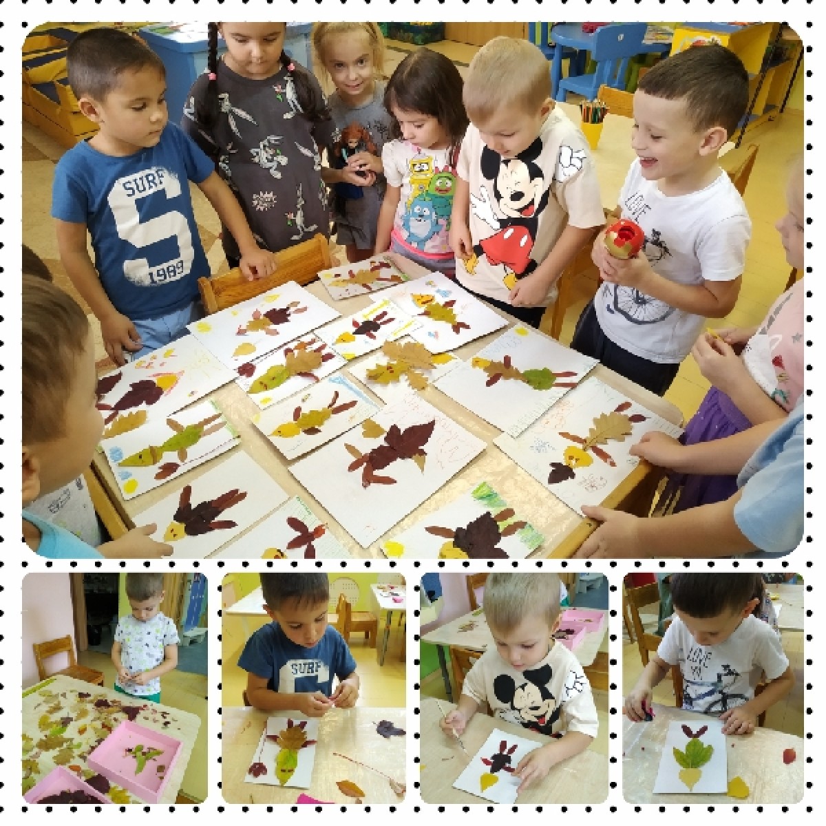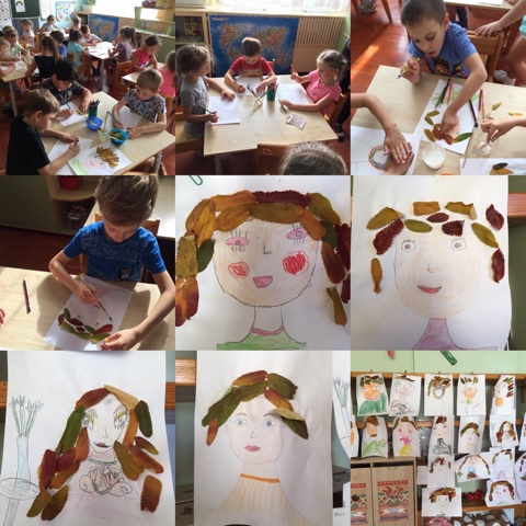 В ходе тематической недели «Я-человек» ребята подготовительной группы «Почемучка» говорили о членах семьи, о родственных отношениях, об уважении к окружающим. Вдохновленные красотой осеннего пейзажа, на занятии по рисованию решили изобразить прически нетрадиционным способом при помощи листьев рябины.