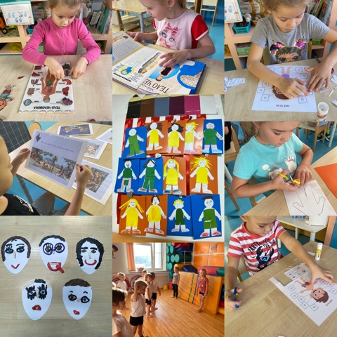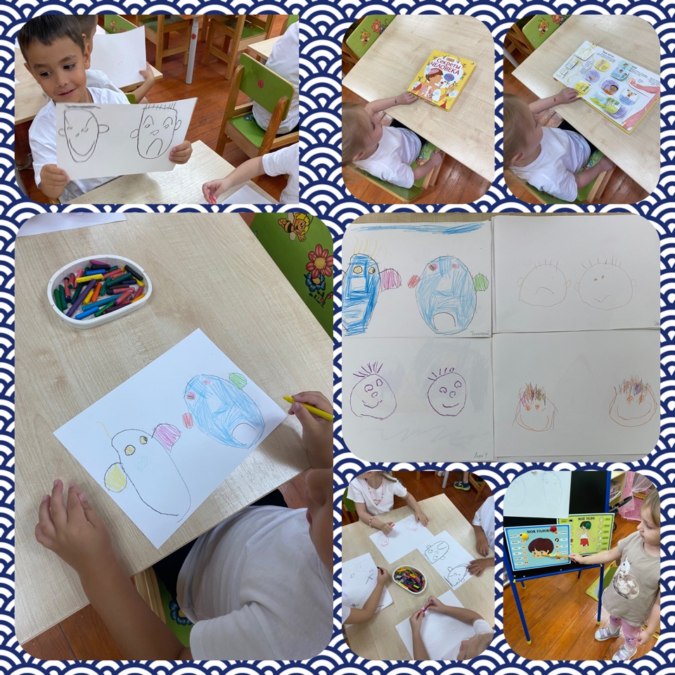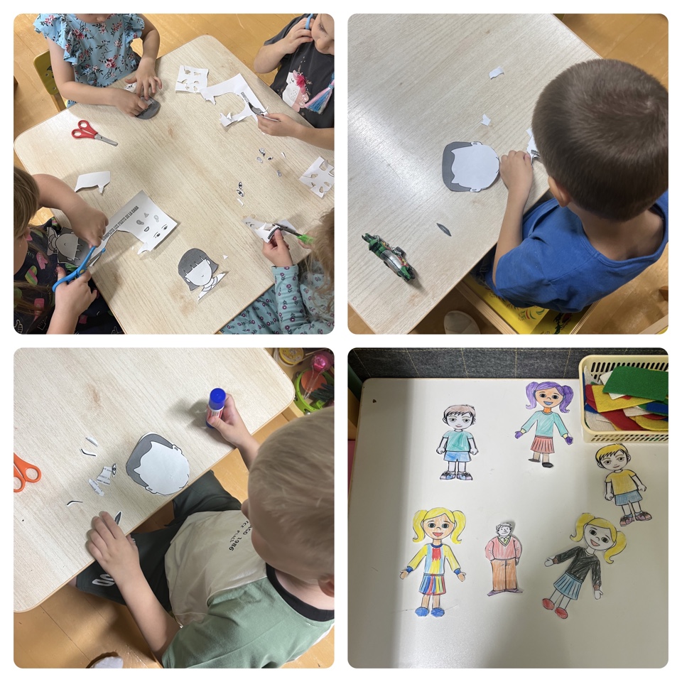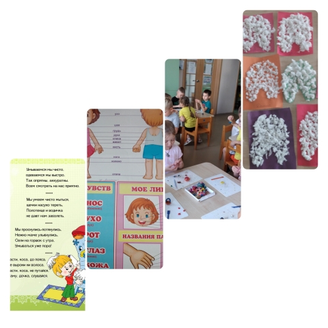 Учились рисовать части лица и мимику человека. Выполнили аппликацию и играли в разные дидактические игры по теме неделе. А также рассматривали энциклопедию «Человек и его части тела».