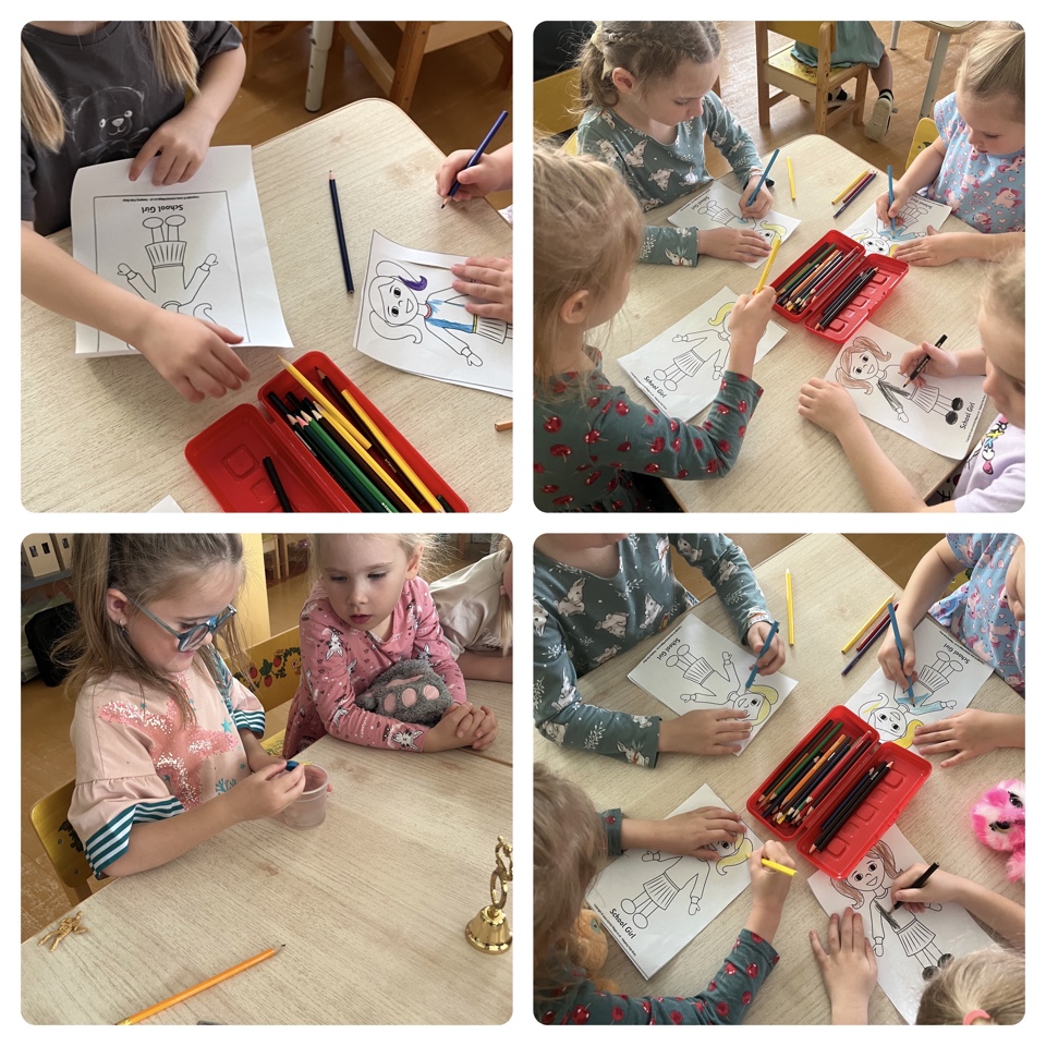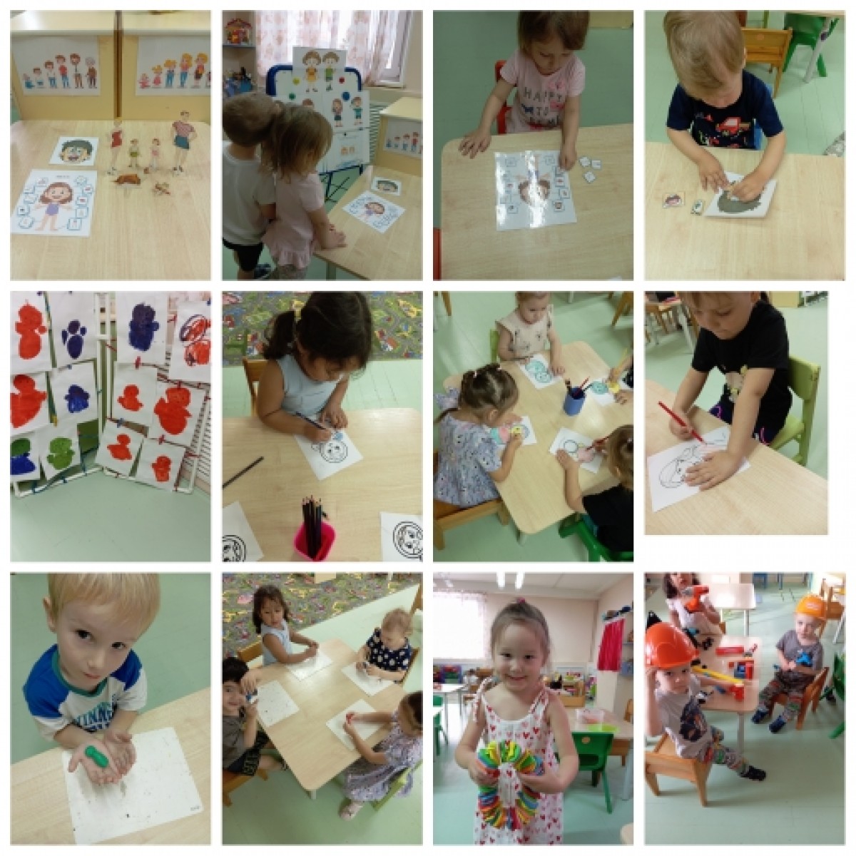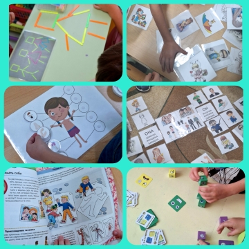 Поиграли в разные игры: " Мальчики и девочки", "собери части тела и лица", "Моя семья". Раскрашивали раскраски. Делали бусы маме и работали с инструментом, как папа.