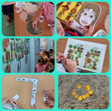 "Кто мы? Кто я?"-эти вопросы зазвучали в группе "Капитошка" на неделе "Я- человек". Весьма познавательная выдалась неделя: чем человек отличается от животных,части тела человека, эмоции, гендерные различия -все эти знания пополняли через игры, как и положено в детском саду. На прогулке хотелось рисовать портреты на песке и с помощью листьев, а в группе слушать задорные песни о человечках и играть, играть, играть... Много творили и вытворяли- и вот получилась загадка дня для родителей. Угадайте-ка, где ваш ребенок?