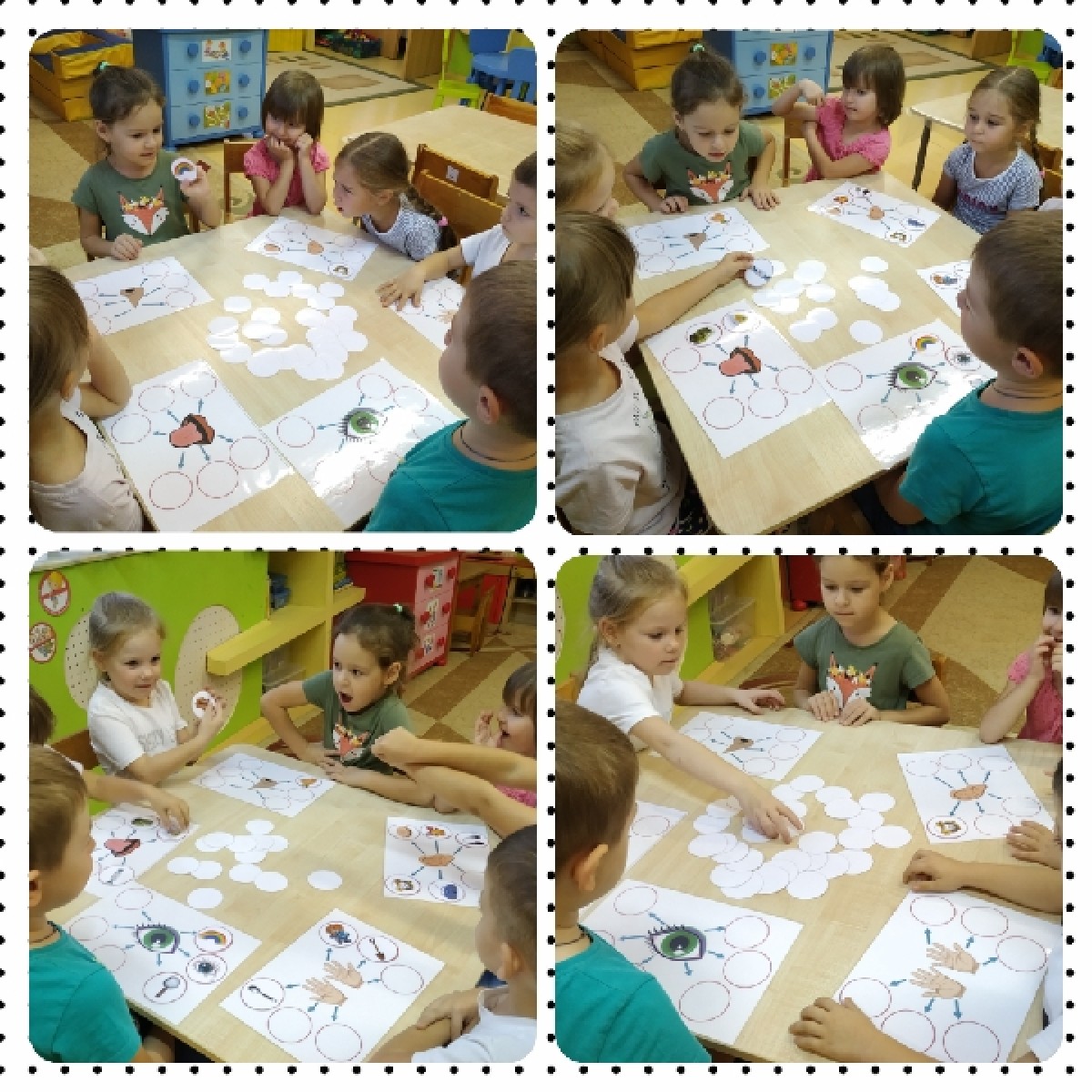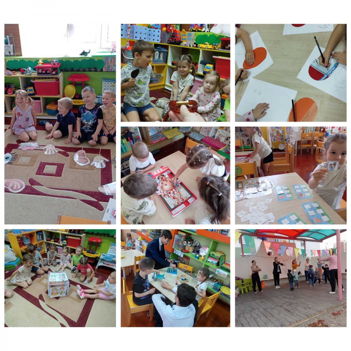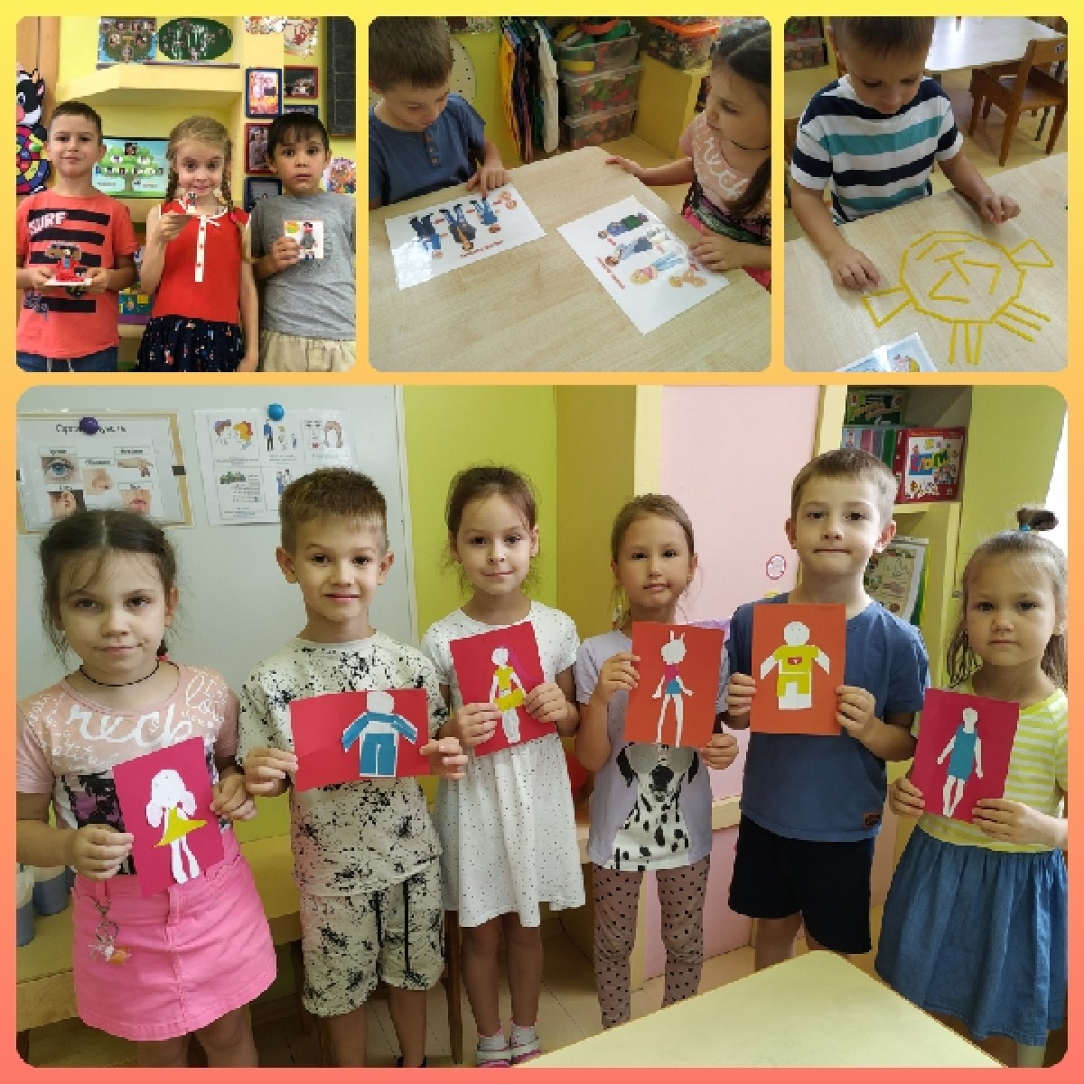 с детьми проводились беседы «все люди разные», «из чего состоит тело человека». Опираясь на свой опыт и знания ребята старались передать образ человека в своих рисунках. С помощью разнообразных изображений и элементов декора ребята с удовольствием создавали собственную аппликацию эмоции. Дидактическими играми «Определи по звуку», «Найди пару», «Это я» закрепили знания детей.