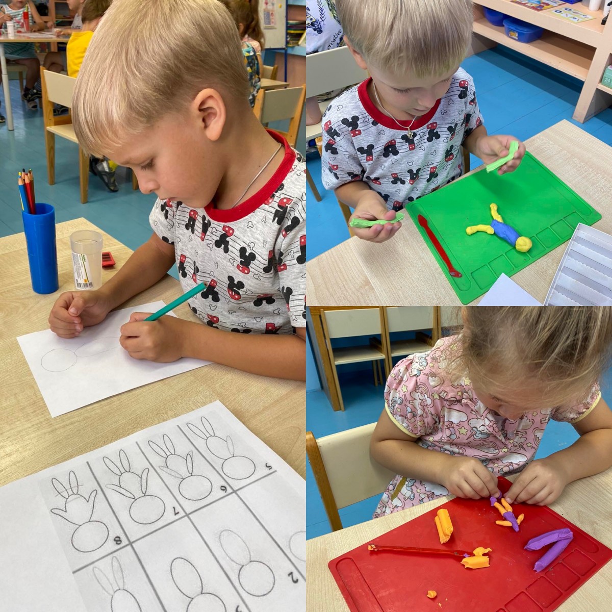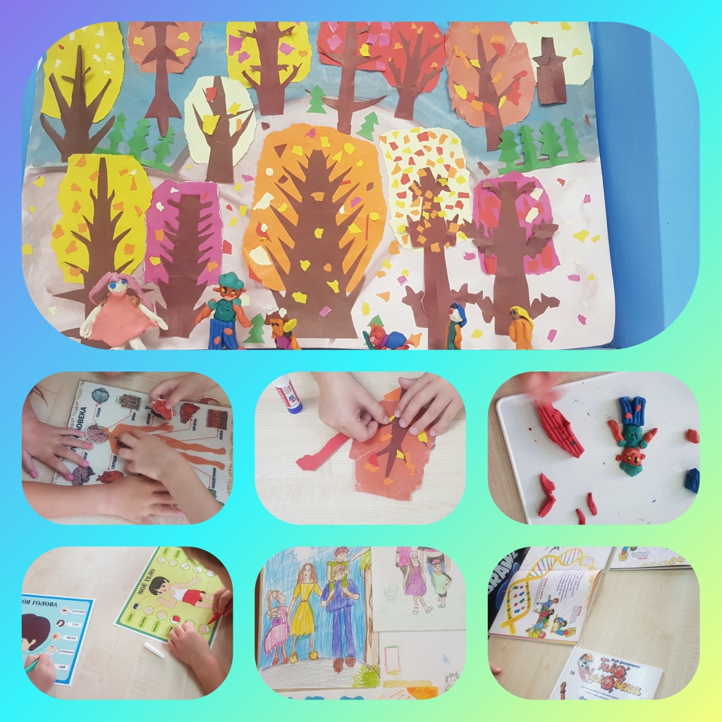 В конце недели ребята углубились в творчество. Было нарисовано много портретов и слеплено человечков.