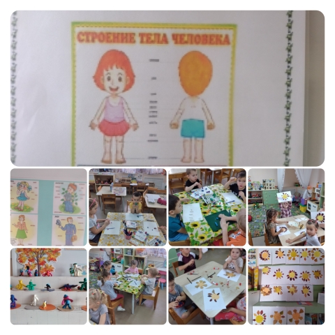 В старшей группе «Колобок» Прошла тема неделя «Я – человек». В ходе совместной деятельности дети знакомились со своим организмом, строением и частями своего тела. Воспитатель с помощью наглядного материала помогала лучше узнать о назначении и особенностях устройства нашего тела. Мы побеседовали о том, как нужно относиться к себе, своему здоровью, как можно и необходимо беречь свой организм, как за ним ухаживать. Дети узнали о различиях между мальчиками и девочками. А в ходе выполнения различных движений руками и ногами дети узнали, что гибкость тела обеспечивают суставы – подвижные соединения костей. Также ребята много рисовали и лепили, чтоб закрепить пройденный материал. Ребятам было интересно!