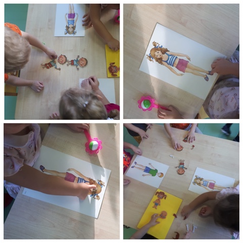 Прошедшая неделя в детском саду была посвящена теме «Я человек». Малыши группы «Бусинки» знакомились с понятием мальчик и девочка. Ребята показывали и называли части тела и лица на себе, и на кукле в повседневном общении, во время игр и режимных моментах. Рассматривали части тела игрушек-животных. Составляли человечков на коврографе и играли в подвижные игры.