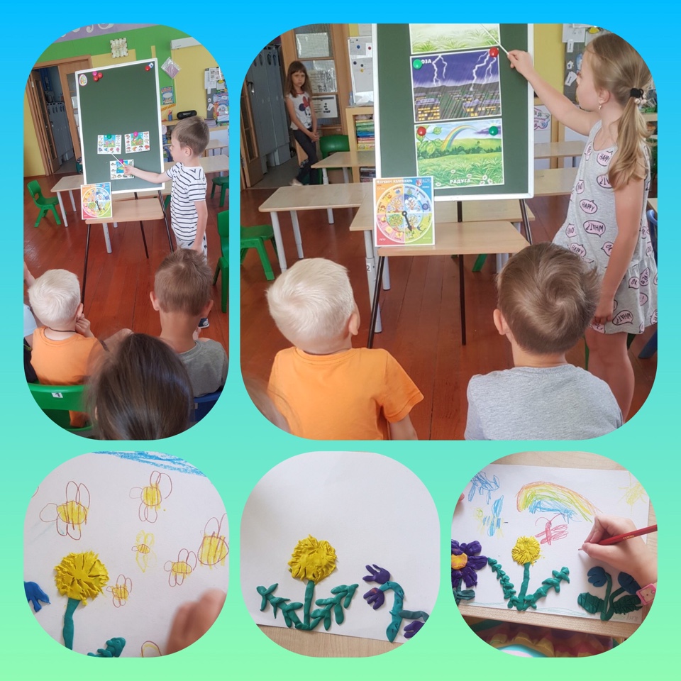 Природа- это все то, что нас окружает. Ребята группы Росинка на недели « Мир природы» беседовали о явлениях природы, растениях, насекомых... в это прекрасное и тёплое время года. Самое радостное явление природы по словам детей это конечно же радуга.Вспомнили после чего она появляется, какие цвета присутствуют в ней. Учились смешивать краски, получая такие цвета как оранжевый и фиолетовый. Беседовали на природоохраняемую тему- почему нельзя рвать цветы и уничтожать насекомых. Провели занятие по лепке «Цветы луговые.» и «Различные насекомые.»Развивали чувство цвета. Воспитывали эстетическое отношение к природе.