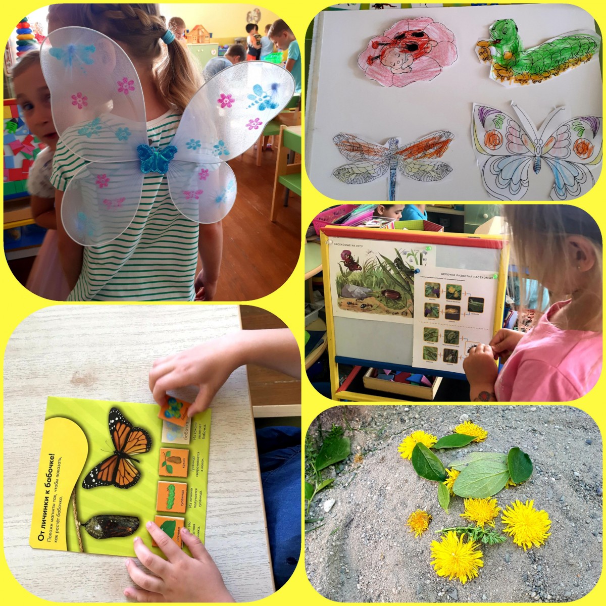 На этой неделе воспитанники гр."Капитошка" и "Петушок" отправились в мир удивительных насекомых. Ох, как ждут дети лета, чтобы наблюдать этих малышей, строить им дома, "кормить" травинками и всячески приручать! Утром пришлось поучаствовать в спасательной операции- мотылек присел отдохнуть ровно перед нашей группой. Ни один мотылек не пострадал- улетел по своим делам. Прочитана энциклопедия: узнали самую большую бабочку, старшие рассказали младшим процесс превращения гусеницы в бабочку.