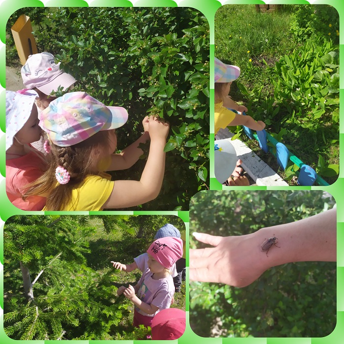Жаркая майская неделя принесла ребятам из группы Теремок немало интересных открытий. Вторая половина мая — время, когда все растет, цветет и радуется теплу. На кустарниках вокруг участка вдруг распустились маленькие цветочки, на их аромат прилетел большой майский жук, расцвели ландыши, даже вечнозеленые ели и пихты украсились пушистыми и яркими молодыми побегами.