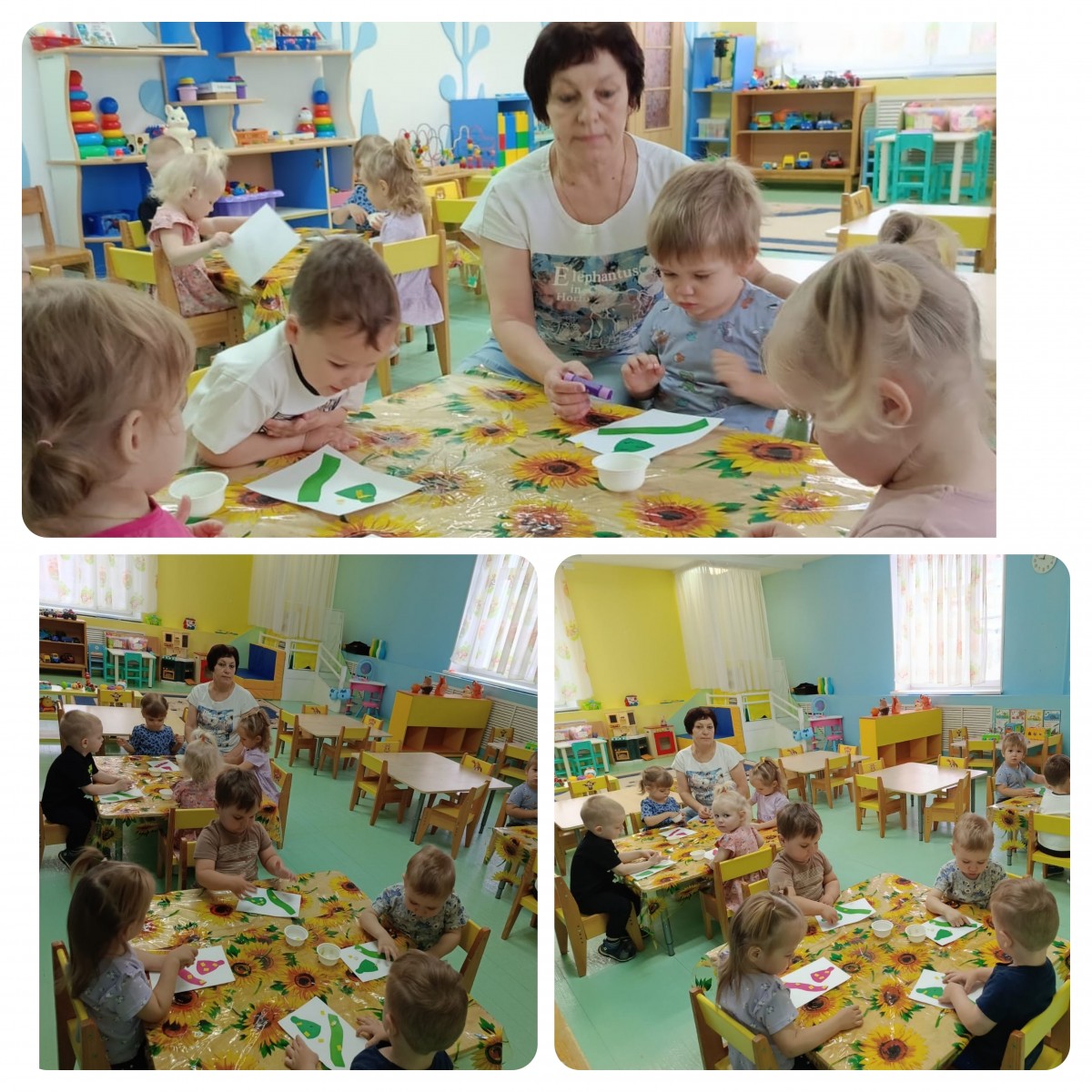 С ребятами группы Вишенка вспомнили строение человека, провели беседу по картинкам. Лепили человека. Выполнили аппликацию подсолнух. Все были довольны своей работой.