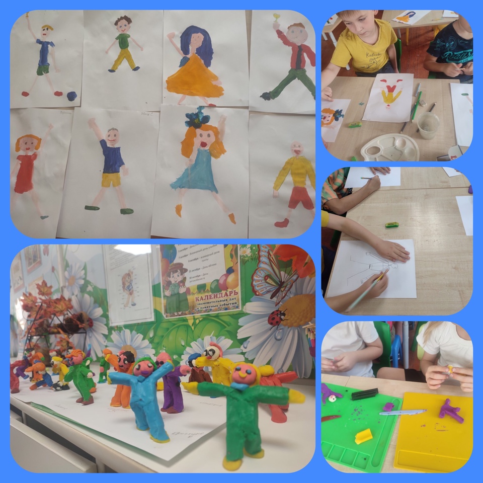 В конце недели ребята углубились в творчество. Было нарисовано много портретов и слеплено человечков.